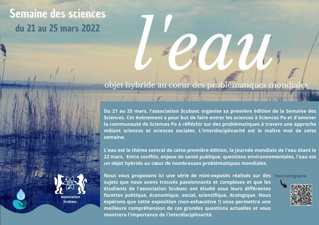 Pour la semaine des sciences du 21 au 25 mars 2022, l’association Scubasc a organisé deux conférences et une exposition sur le thème de Paris, avec pour thème l’eau, objet interdisciplinaire à l’interface des sciences et des sciences sociales.